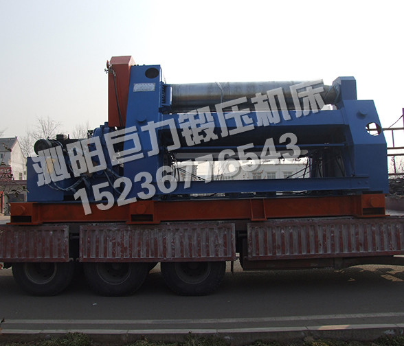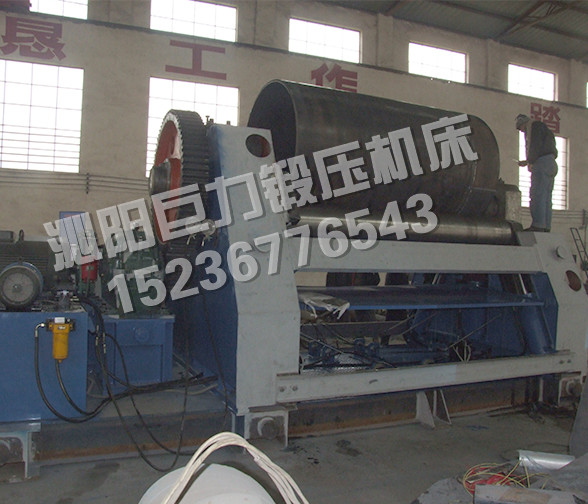 Compared with the symmetrical three-roll plate winding machine, the four-roll plate winding machine can bend the end of the plate directly without the aid of other equipments and dies, and the remaining straight edge is smaller; it can make the plate turn into a workpiece without turning the head.
