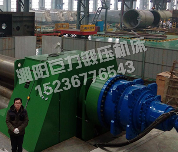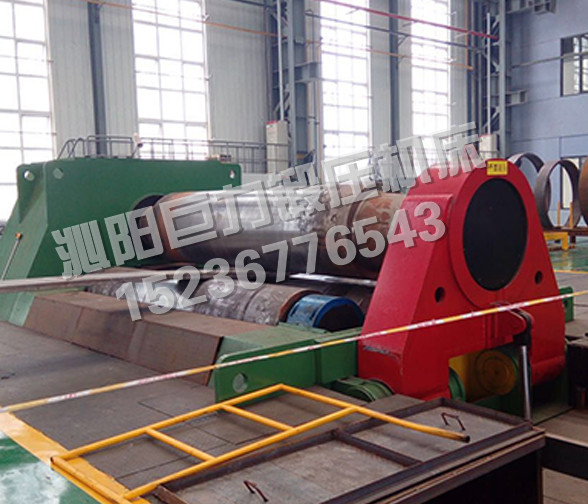 Compared with the symmetrical three-roll plate winding machine, the four-roll plate winding machine can bend the end of the plate directly without the aid of other equipments and dies, and the remaining straight edge is smaller; it can make the plate turn into a workpiece without turning the head.