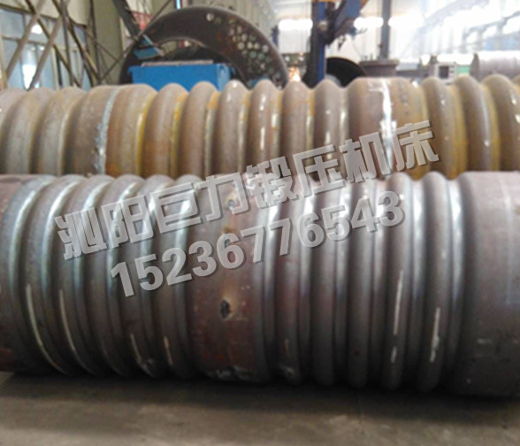 W12NC-系列微控波紋四輥卷板機,既可作為普通四輥卷板機使用,能將金屬板料一次上料,不需調(diào)頭即可完成板料端部預彎和卷制成形,剩余直邊小,是卷制圓形、弧形工件的理想設備。該機上下工作輥均為主驅(qū)動輥,由液壓馬達、行星減速機驅(qū)動,側(cè)輥為被動輥,下輥、側(cè)輥升降為液壓傳動,升降位移均由計算機控制,自動調(diào)平,屏幕數(shù)字顯示,同步精度±0.15mm。翻轉(zhuǎn)軸承體的翻轉(zhuǎn)和復位,由液壓驅(qū)動,上輥尾部裝有平衡機構,可以方便卸出卷制后的工件及筒體。設有移動式獨立操作臺,方便工人使用,設有安全聯(lián)鎖裝置,該機功能全,精度高,操作方便,是石油、化工、鍋爐、造船、水電、金屬結構等行業(yè)卷制圓形、弧形和錐形工件為理想的機型。該機除了作為普通四輥卷板機使用外,在上下工作輥上加裝模具,還能壓制波紋筒形工件,每組模具采用上下兩片模具組合而成,方便拆裝,而且,各組模具可以自由組合成不同長度,以適應不同寬度的波紋筒壓制。為了在一臺機器上同時滿足內(nèi)波紋筒和外波紋筒的壓制,上下工作輥設計為同一直徑,針對不同的波形,上下輥上的凸模和凹??梢曰Q,地降低了產(chǎn)品成本,方便用戶使用。在機器一側(cè)的聯(lián)接梁上布置有二個擋料裝置,以確保壓制波紋筒時,工件不會跑偏,保證波紋筒的精度符合要求。擋料裝置左右各一個,沿軸向可以通過油缸作用移動一定的距離,以適應不同寬度的波紋筒都能準確定位。